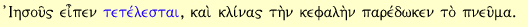 Jesus said, “It is finished.” With that, he bowed his head and gave up his spirit. | |